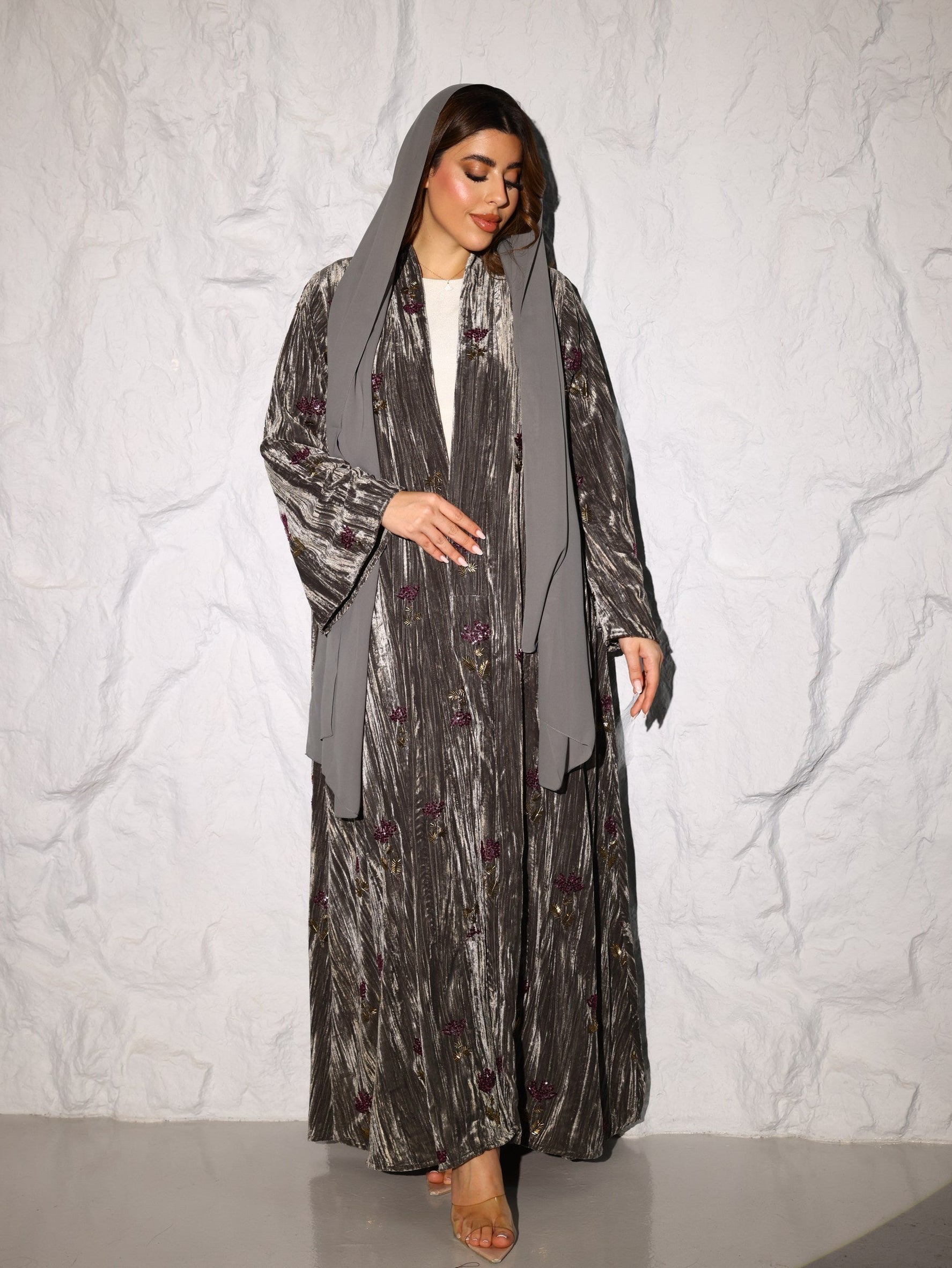 - Embroided Silk Velvet Abaya (Sheila Included)